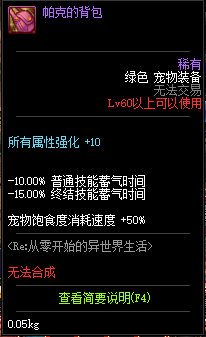 녹색 장비칸 : 팩의 배낭 (올속강+10)