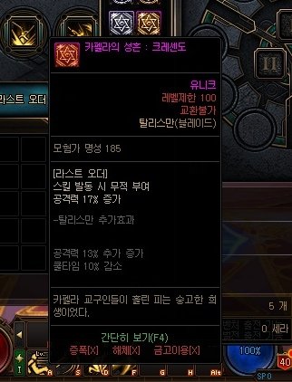 라스트 오더 탈리스만은 단순 쿨감, 뎀증이라 영상을 패스했습니다.